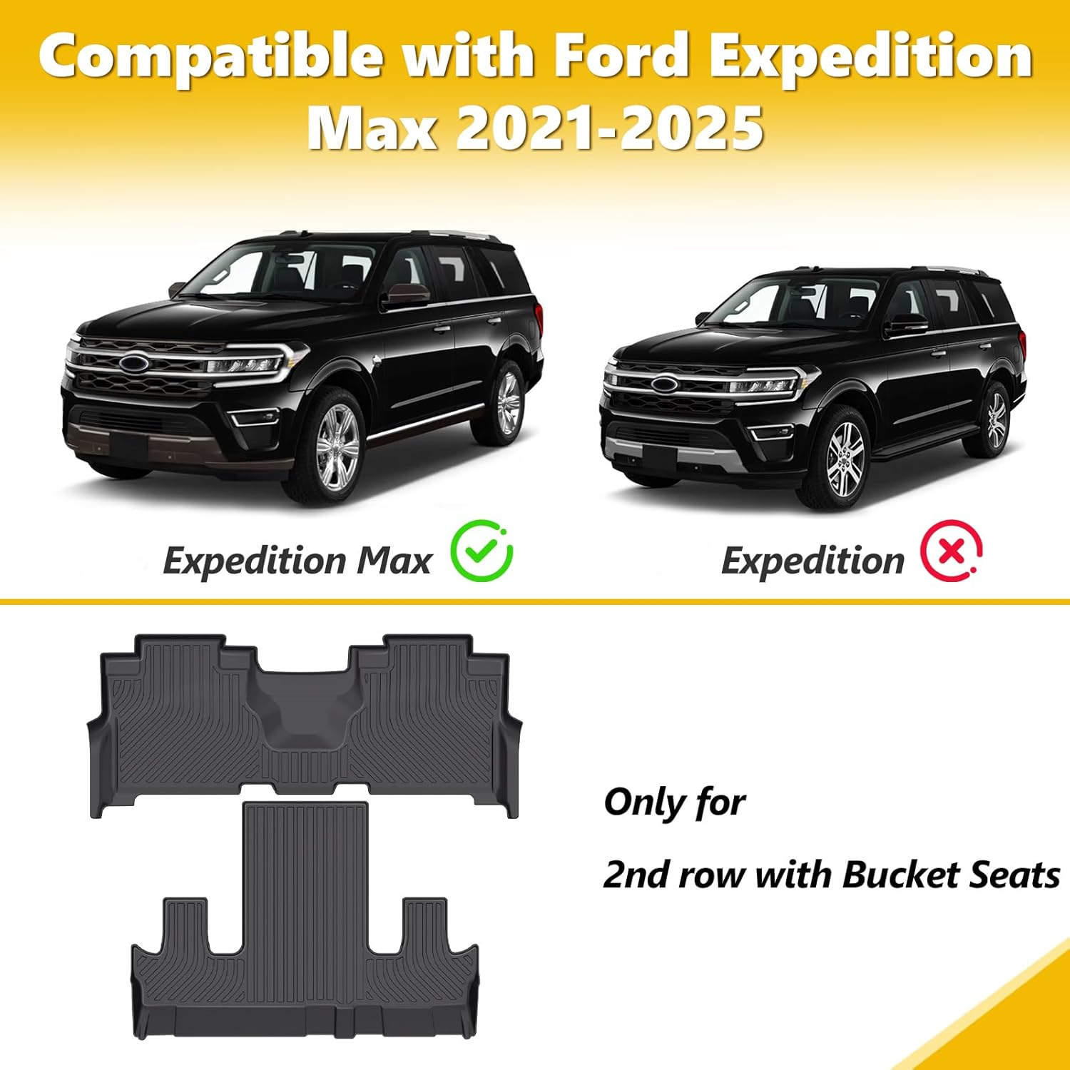 GINOWY-Floor Mats for Ford Expedition MAX 2025 2024 2023 2022 2021 Bucket Seat 7 Passenger All Weather Car Floor Mats Expedition Accessories Rubber Liners