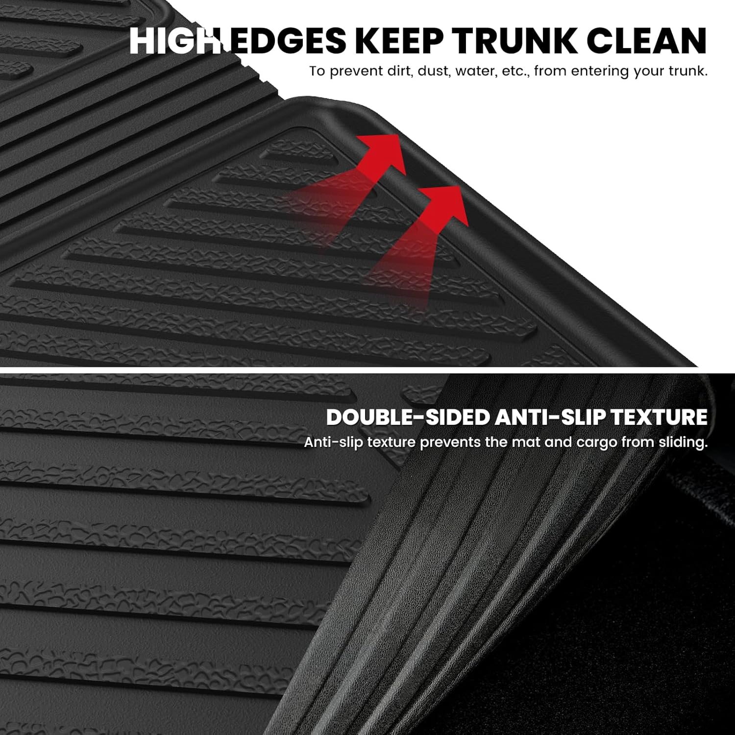 - Easy Installation & Cleaning: Installation and cleaning are quick and easy—simply remove the cargo tray from the packaging, unroll it, and place it securely in the cargo. For cleaning, use a broom or vacuum to remove larger debris, rinse the mat with a hose, allow it to air dry, and then reinstall. The entire process is convenience and time efficiency