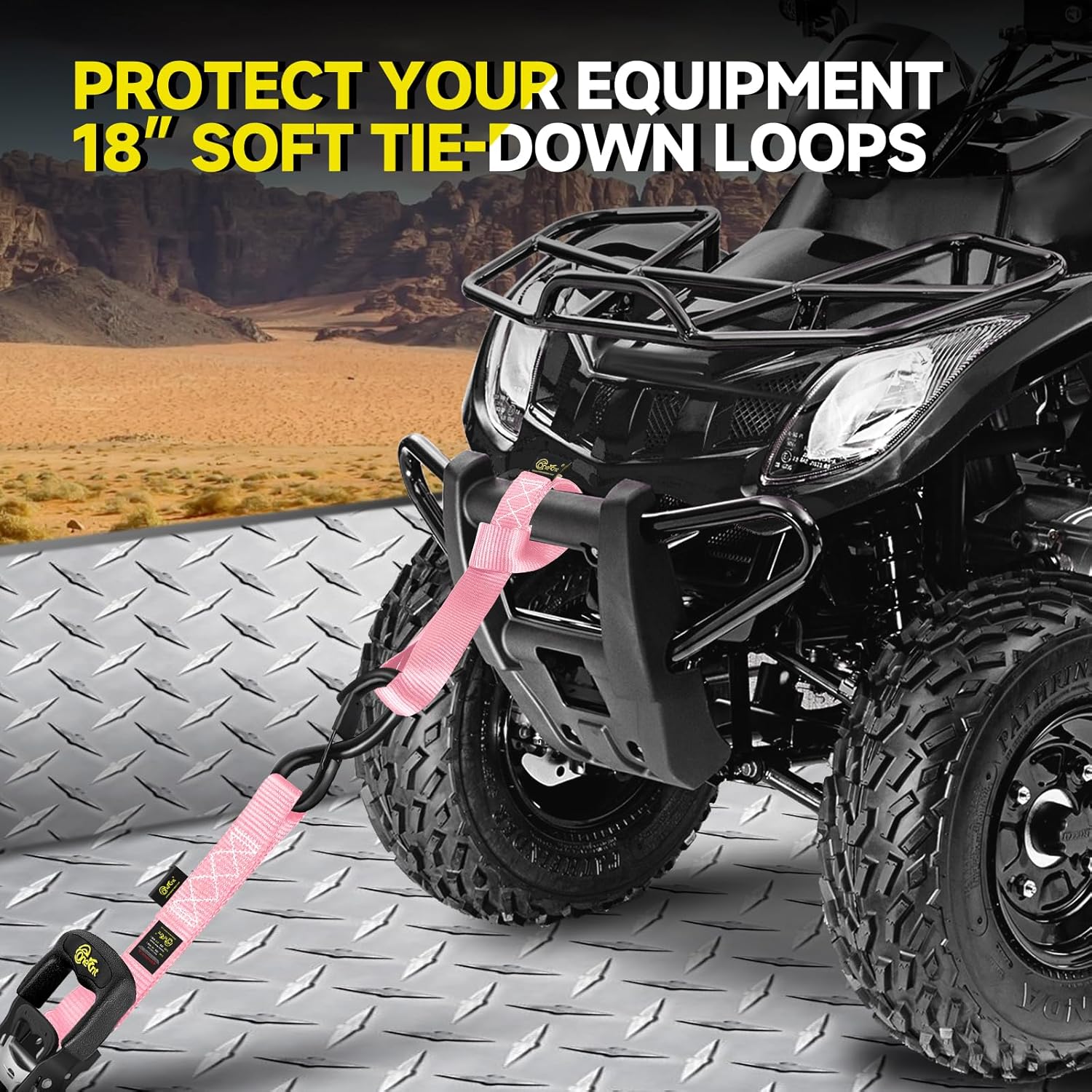 - Upgraded Ratchet Strap Kit : Our powerful tie-down strap kit includes (4) sturdy 1.6” x 10’ ratchet straps with padded handles, coated S-hooks with safety clips, and (4) 18” soft tie-down loops, all extended and thickened for ultimate reliability and ease of use.