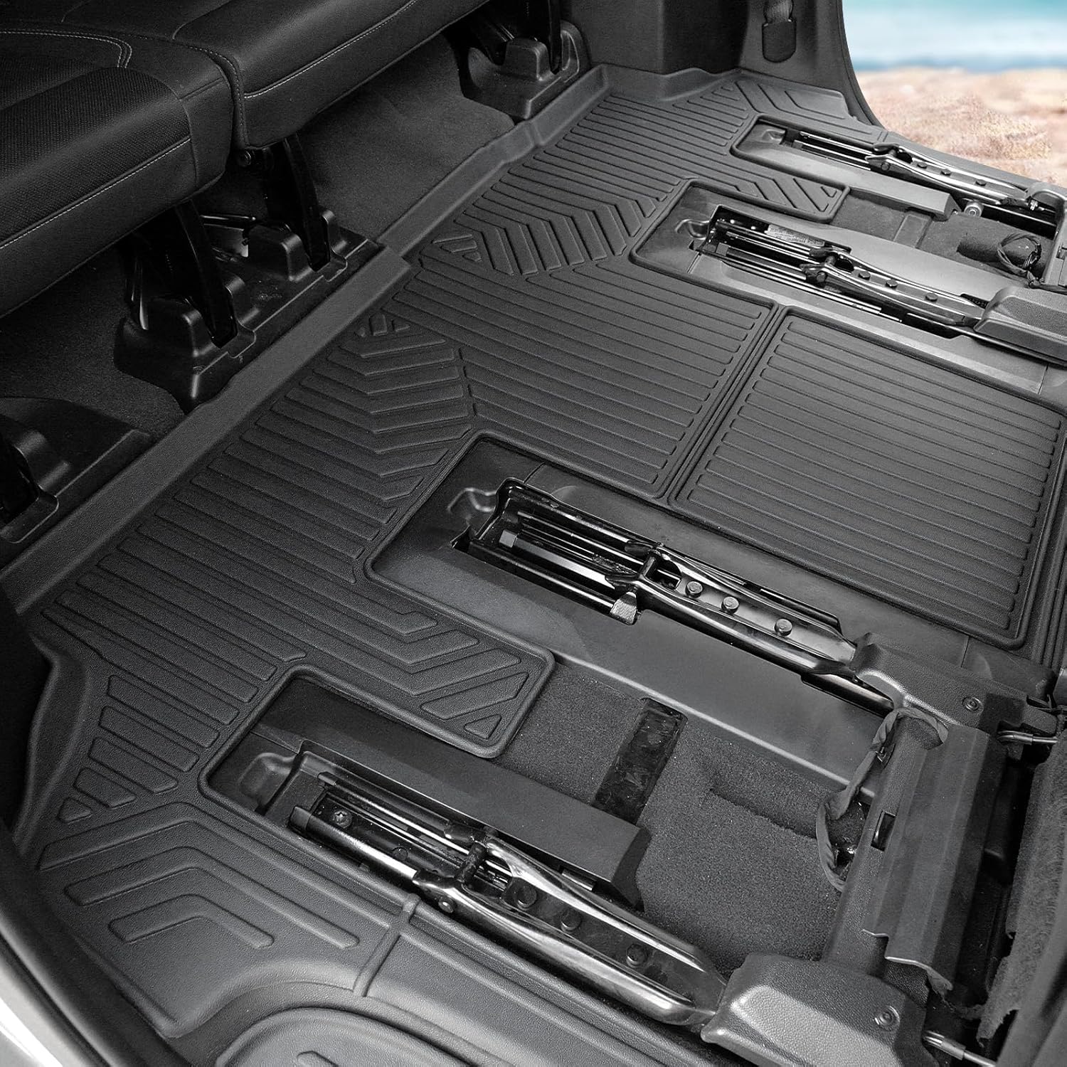- Custom Fitment: Precisely engineered with 3D laser scanning for 2021 2022 2023 2024 2025 Chevy Suburban / GMC Yukon XL with 7-passenger seating (2nd-row Captain's Chairs). Includes floor mats, cargo liner, 3rd row seat back protectors, 4PCS door sill guards β 30% more components than standard sets