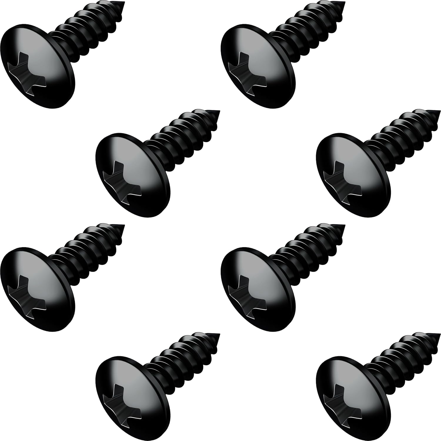 - 8 Screws for Total Plate Security: This set includes 8 heavy-duty hot black oxide stainless license plate screws, providing everything you need to securely mount both front and rear license plates. Compatible with most frames and holders of most vehicles, our rust proof license plate screws are the all-in- one solution for a rattle-free, reliable fit.