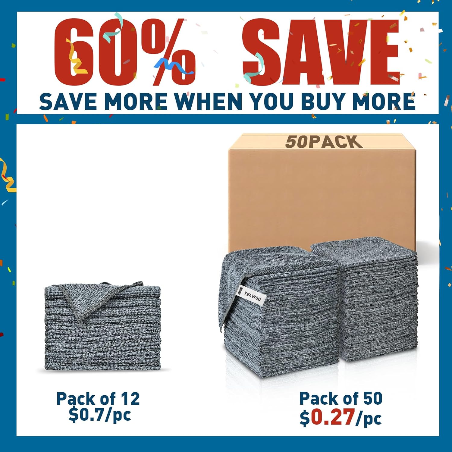 - 【Soft and Lint-Free】TEAWOO microfiber towels bulk supply of ultra-soft, non-abrasive microfiber towels ensure a scratch-free cleaning experience on surfaces, paint, glass, and coatings. Perfect for cleaning tough grease and dirt from your car, kitchen, and windows, leaving no traces behind.