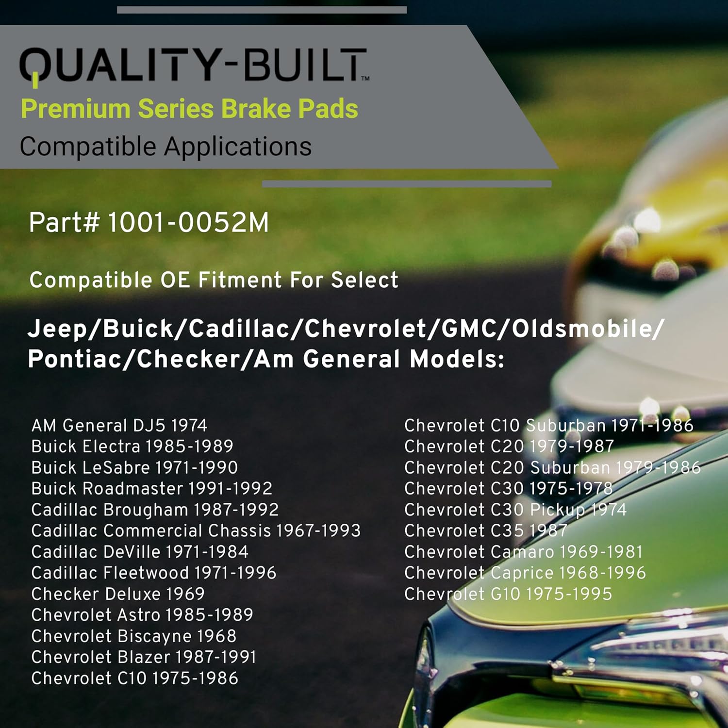 Premium Semi-Metallic Front Brake Pads (1001-0052M) Compatible with 1967-2002 Buick/Cadillac/Chevrolet/GMC/Jeep/Oldsmobile/Pontiac (C10/C1500/C20/C2500/C30 Pickup/C35/Camaro & More)