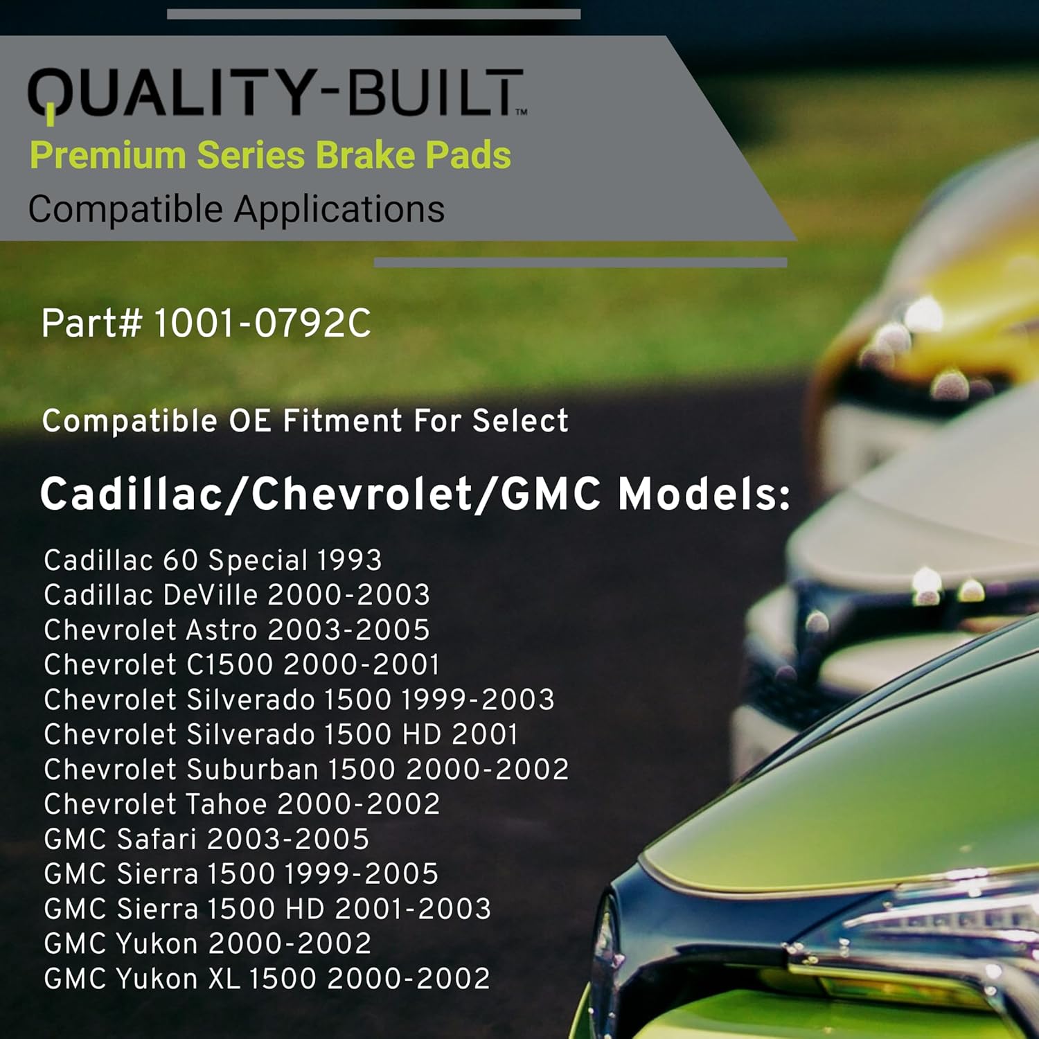 Premium Ceramic Rear Brake Pads (1001-0792C) Compatible with 1993-2005 Cadillac/Chevrolet/GMC (60 Special/Astro/C1500/DeVille/Safari/Sierra/Silverado/Suburban/Tahoe/Yukon & More)