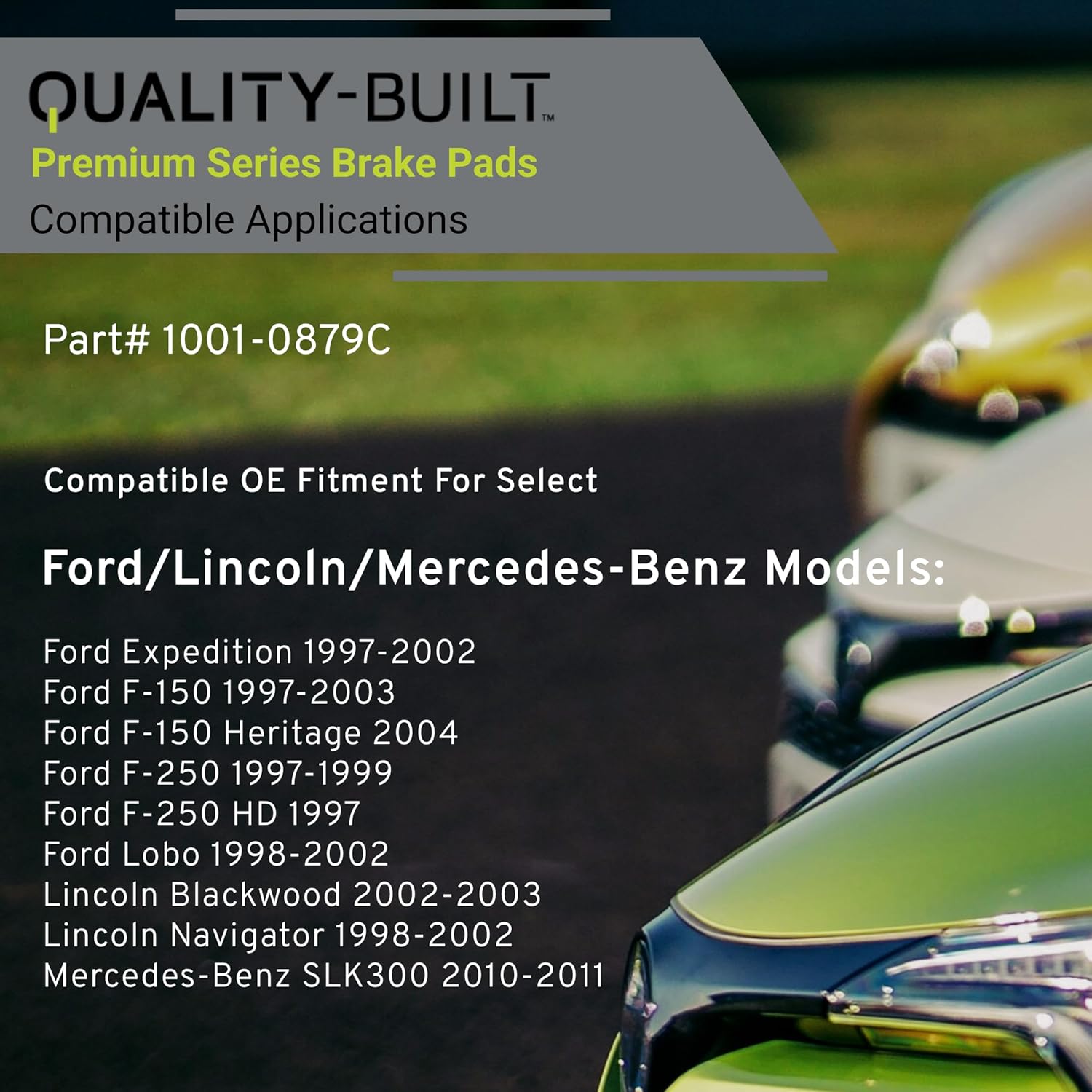 - VEHICLE FITMENT LIST: Ford Expedition 2002-1997, F-150 2003-1997, F-150 Heritage 2004, F-250 1999-1997, F-250 HD 1997, Lobo 2002-1998, Lincoln Blackwood 2003-2002, Navigator 2002-1998, Mercedes-Benz SLK300 2011-2010 (PART#1001-0879C)