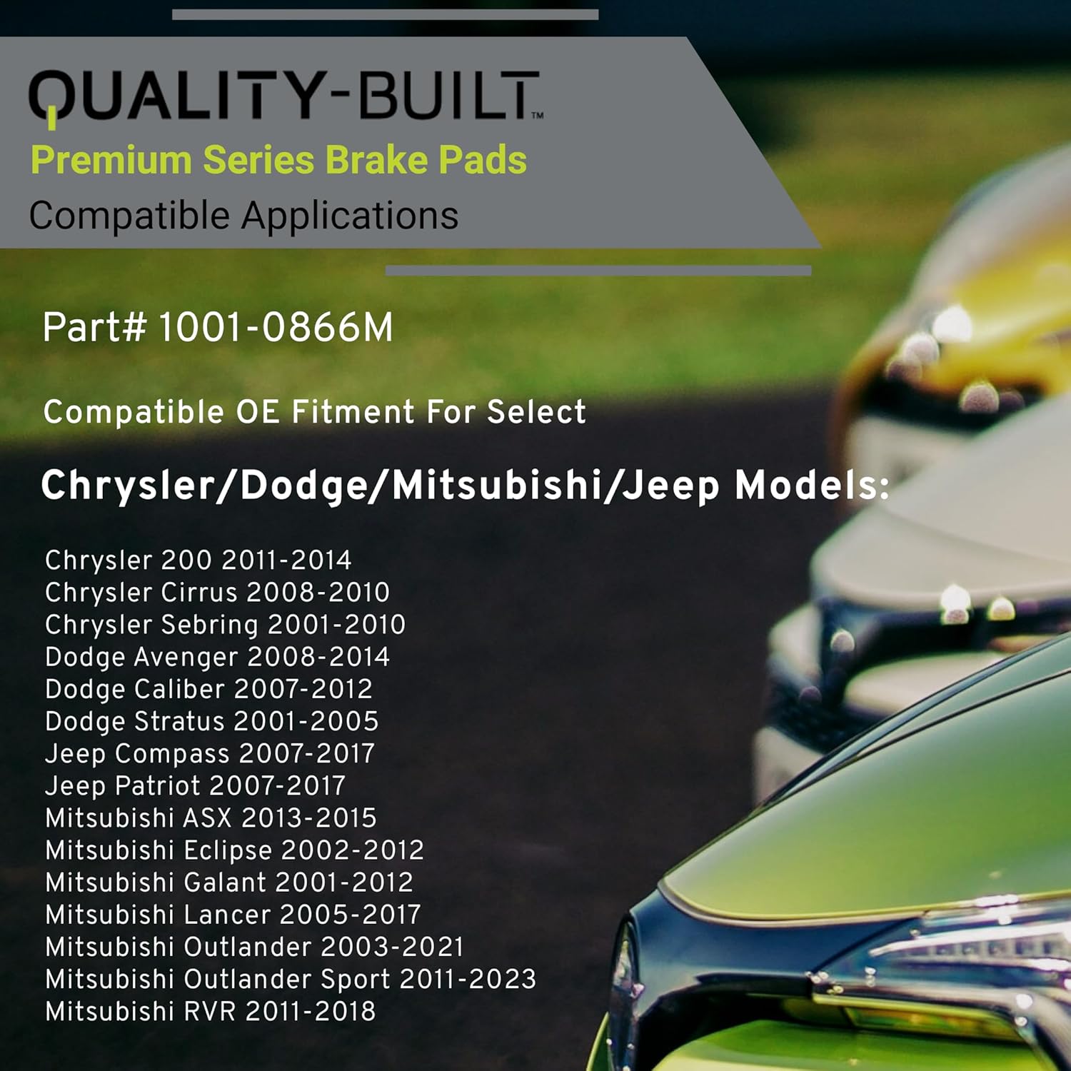 Premium Semi-Metallic Front Brake Pads (1001-0866M) Compatible with 2001-2023 Chrysler/Dodge/Jeep/Mitsubishi (200/ASX/Avenger/Caliber/Cirrus/Compass/Eclipse/Galant/Lancer/Outlander)