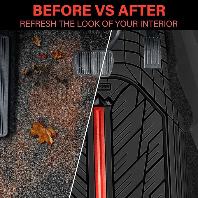 - 【Custom Fit Design】: Created for fast and easy installation in most cars, trucks and SUVs, these universal Flexible Liners floor mats can be trimmed with a pair of scissors to provide the perfect custom fit for your vehicle