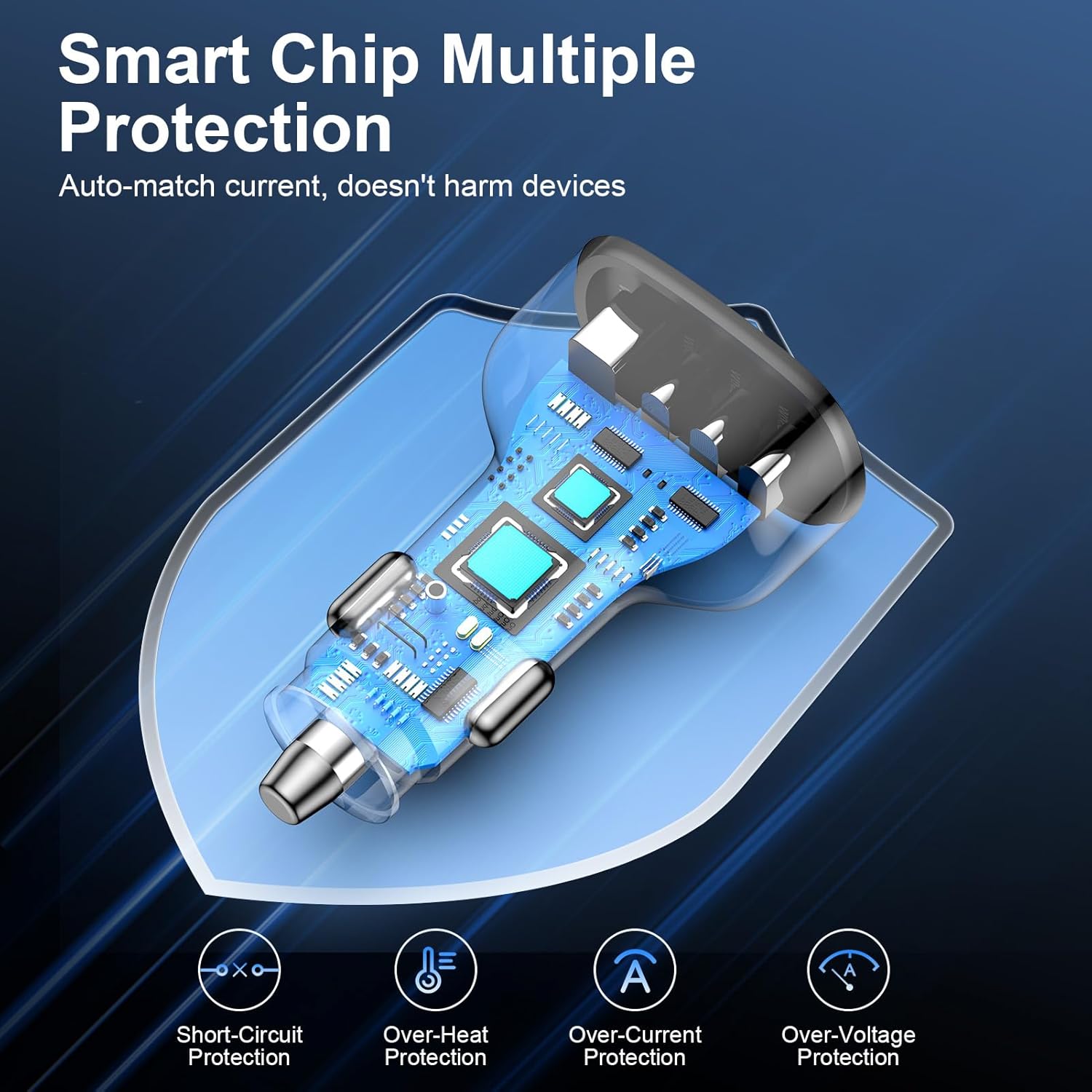 - 【Safety Reliable】The USB Fast Car Charger built-in multi-protect safety system, intelligent circuit design protects against short circuiting, over-heating, over-currents, and over-charging. Charging stops when battery is full